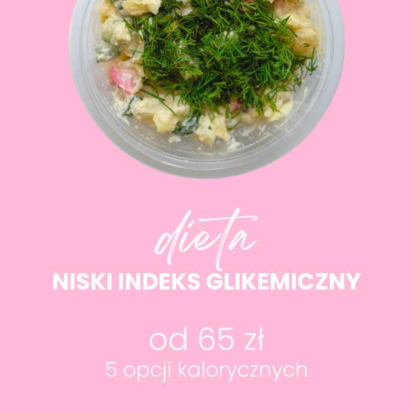 Dieta oparta na produktach o niskim lub średnim indeksie glikemicznym. Pozwala to na wyeliminowanie skoków poziomu cukru we krwi, co zapobiega napadom głodu oraz korzystnie wpływa na organizm. Dieta niskoglikemiczna jest bogata w błonnik, warzywa, owoce, chude mięsa, ryby i produkty pełnoziarniste. Idealna dla osób z zaburzeniami gospodarki cukrowej, np. przy insulinooporności, pcos.