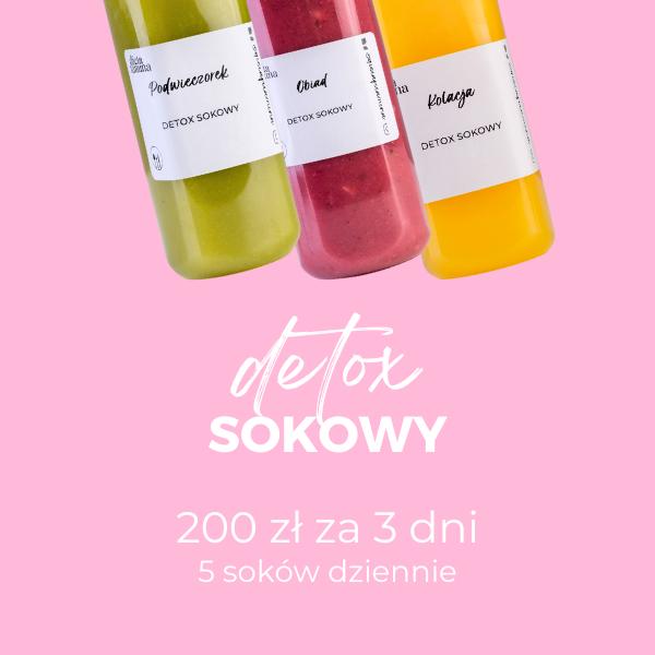 Detoks sokowy jest idealną opcją dla osób, którym zależy na oczyszczeniu organizmu z toksyn oraz na poprawie samopoczucia. Jest to dobry sposób na dostarczenie organizmowi dodatkowej dawki mocy – szeregu witamin i mikroelementów. Dzienna kaloryczność soków, to ok. 800 kcal.